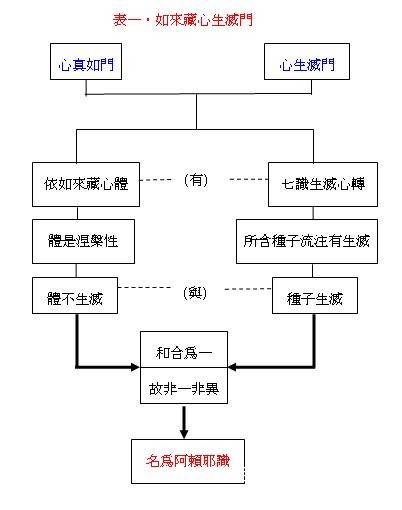 《大乘起信论》马鸣菩萨云:“心生灭门者:谓依如来藏有生灭心转;不生灭与生灭和合,非一非异,名阿赖耶识。”