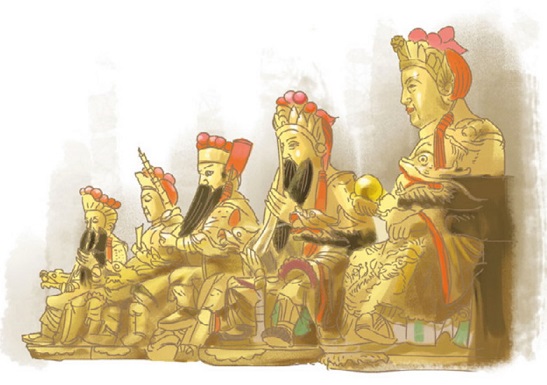 从另一方面来看,中国其实自古也有五路财神,如上图所示,姑且不论其本质为何,至少在外貌上看起来还是端严祥和,不至于恐怖“骇人”。可见,同样都是经过一段岁月,随著人们不同的生活习惯、信仰而有所演变,但是从这样子的图片中,所显示出来的不同相貌,诸位就可以了解两者背后的文化差异。这样子的演变,始终随著时代背景的不同,以及众生喜好的差异,永远都一直会有“演进”的,有演进的,就不是本来自在的真实法。