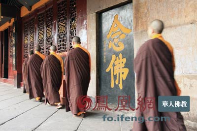 寺院僧众上晚课(图片来源:凤凰网华人佛教)